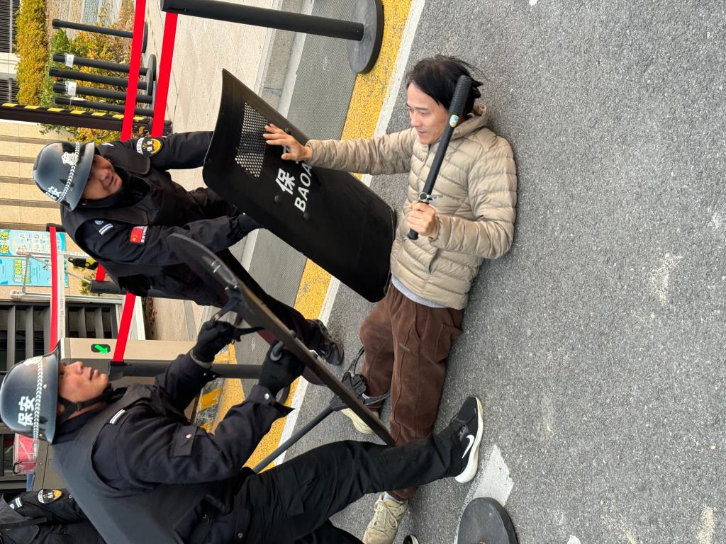 处置中,安保小组迅速携带钢叉、盾牌等器材,与“歹徒”展开周旋,利用防暴器材将“歹徒”控制。整个演练环节紧张有序,各岗位人员反应迅速、配合默契,从发现险情、报告情况、启动预案到现场处置、人员疏散均严格按照流程执行,达到了预期效果。