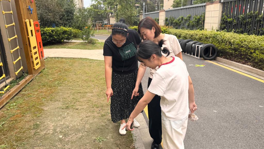 活动开始前,潘老师对检查工作进行细化部署,明确各小组职责与排查重点。随后,由年级组长带队,和教师一起同步开展排查工作。在户外场地,设施设备组对大型滑梯、平衡木、爬笼等器械逐一查看,焊接点是否开裂、连接处螺丝是否松动,用手触摸器械表面及边缘,确保无毛刺、无尖锐凸起;进入走廊及教室后,教师对电源插座、开关、门窗等进行细致检查,特别留意墙面、门窗框等处是否存在透明粘钩。发现粘钩后,教师立即用铲刀、除胶剂等工具小心铲除,彻底清理残留胶痕,防止幼儿在奔跑、玩耍时磕碰受伤。教师还同步对全园消防设施进行核验:测试灭火器压力是否正常、消火栓出水是否顺畅,检查消防通道是否被占用、应急指示灯是否完好。