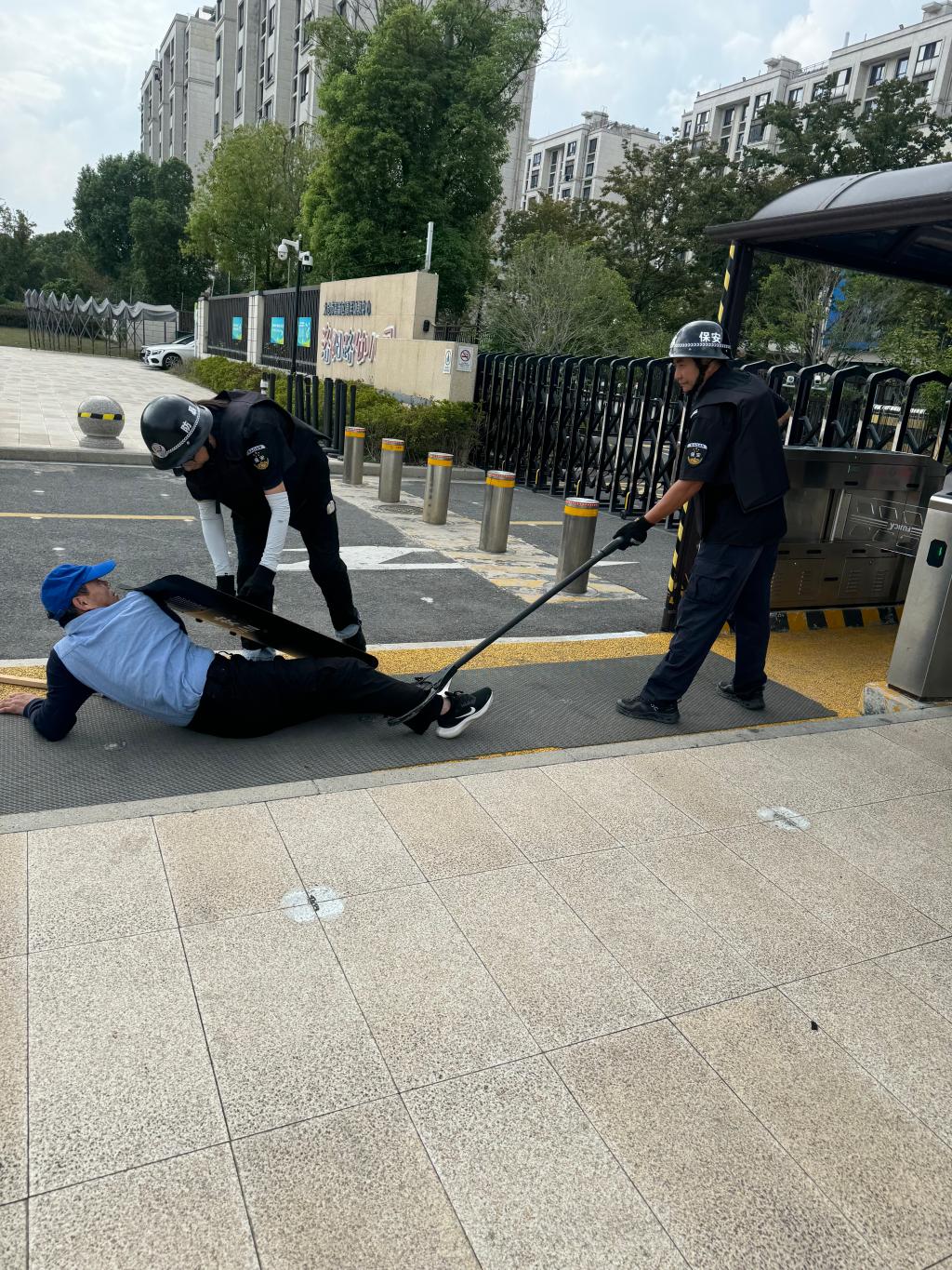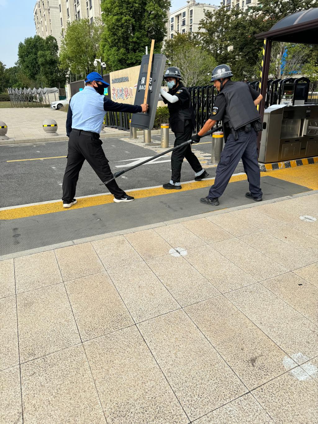 在本次防爆演练中,为保证活动顺利开展,领导小组拟定了方案,召开部署会,进一步细化各岗位职责,演练中保安临危不乱,立即启动一键报警,其余保安临危不乱,在保证自身安全的前提下,手持棍棒、钢叉等,将“歹徒”围住,牵制“歹徒”,最后将”歹徒”及时制服。