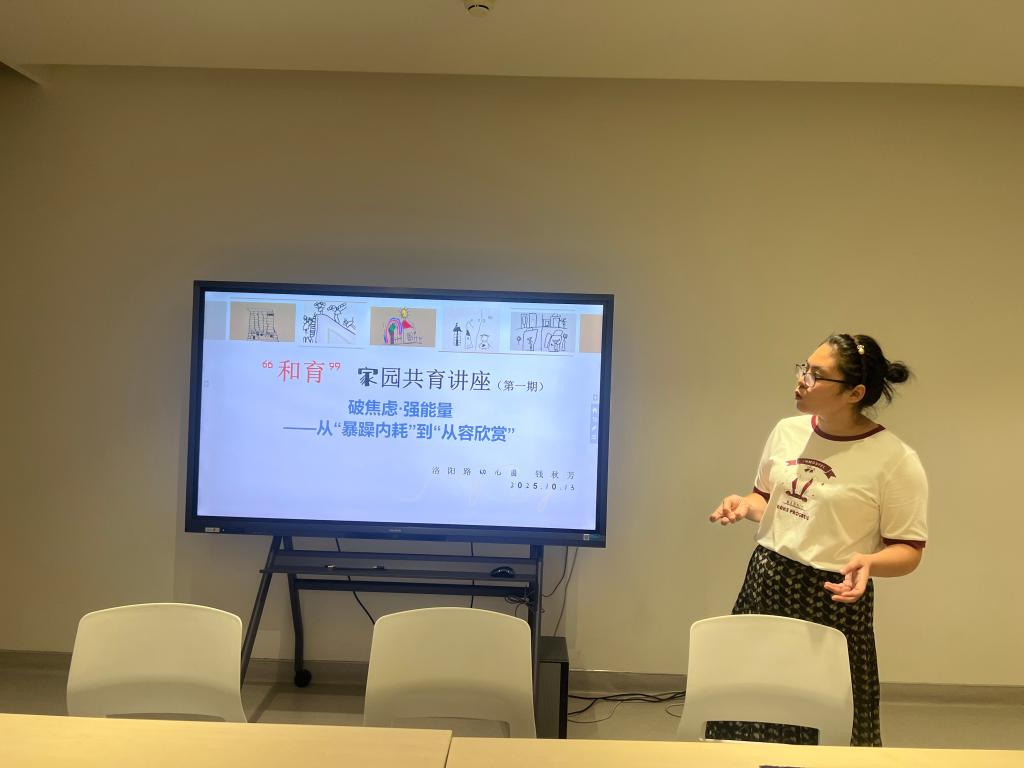 近日,洛阳路幼儿园家园沟通项目组以《破焦虑·强能量——从“暴躁内耗”到“从容欣赏”》为主题,接连开展两场“和育”家庭教育系列讲座。通过10月13日的教师专场与10月16日的荷塘社区家长专场,既夯实了教师指导能力,又搭建了家园社共育桥梁,将科学育儿理念精准传递。