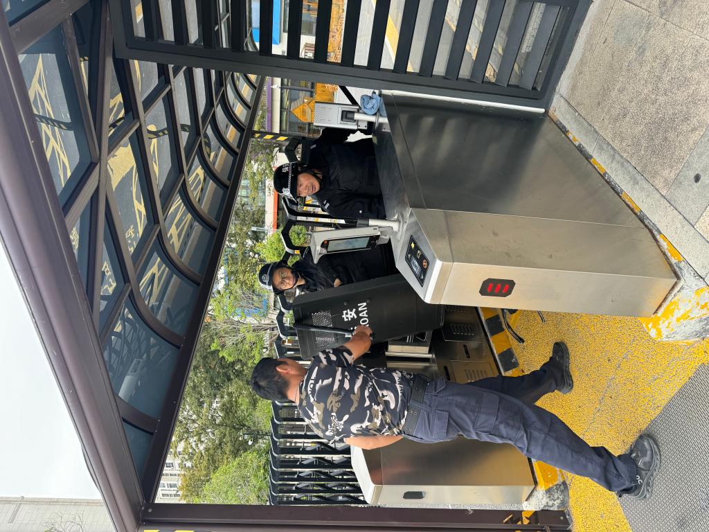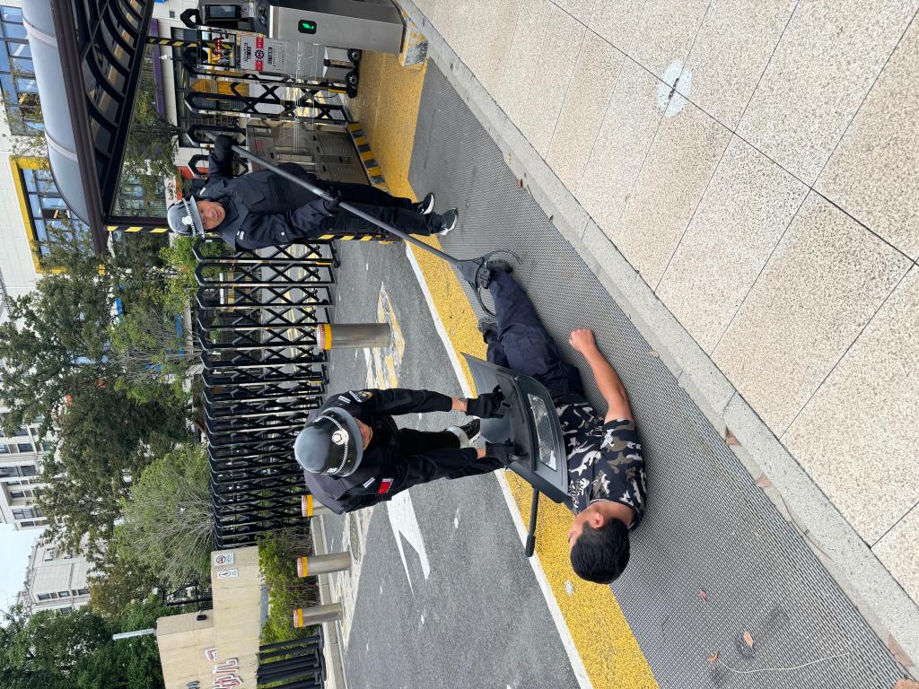 反恐防暴演刁模拟场景中,可疑人员试图闯入进入学校,学校安保人员立即启动应急预案,迅速报警并疏散学生,然后在保证自身安全的前提下和“暴徒”周旋,成功将“暴徒”制服并带离现场。