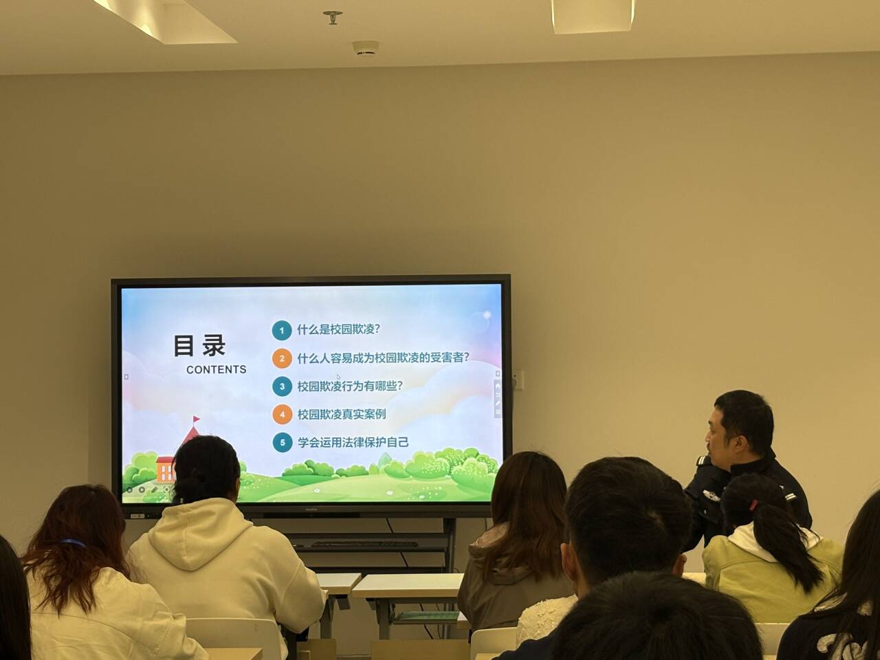 2025年10月23日下午,太仓市高新区镇洋幼教中心洛阳路幼儿园邀请法治副校长、市公安局板桥派出所董警官为家委会、膳委家长开展“防范校园欺凌”专题法治讲座。