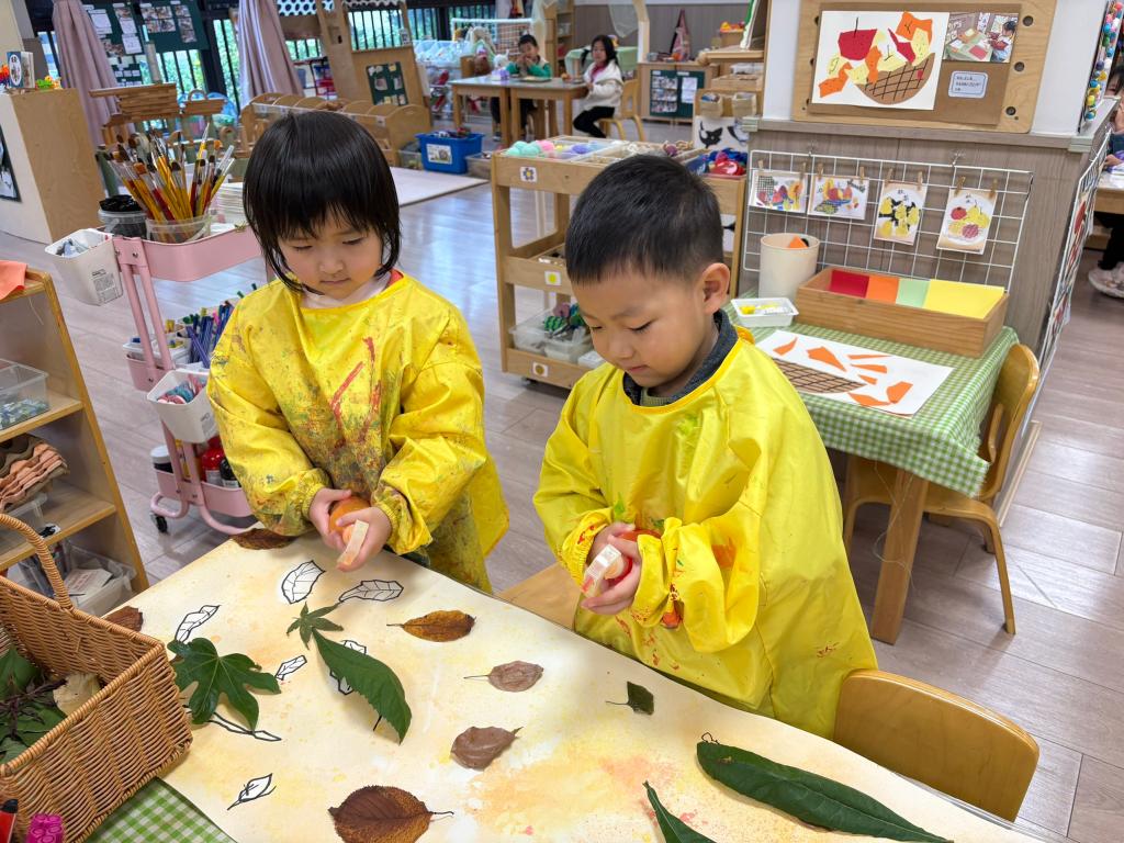活动前,孩子们在老师的带领下走进户外,小心翼翼收集各种形状、纹理的落叶。有的叶片边缘圆润,有的带着清晰叶脉,有的形似小船,有的状如羽毛,每一片落叶都成为孩子们眼中的 “自然宝藏”。