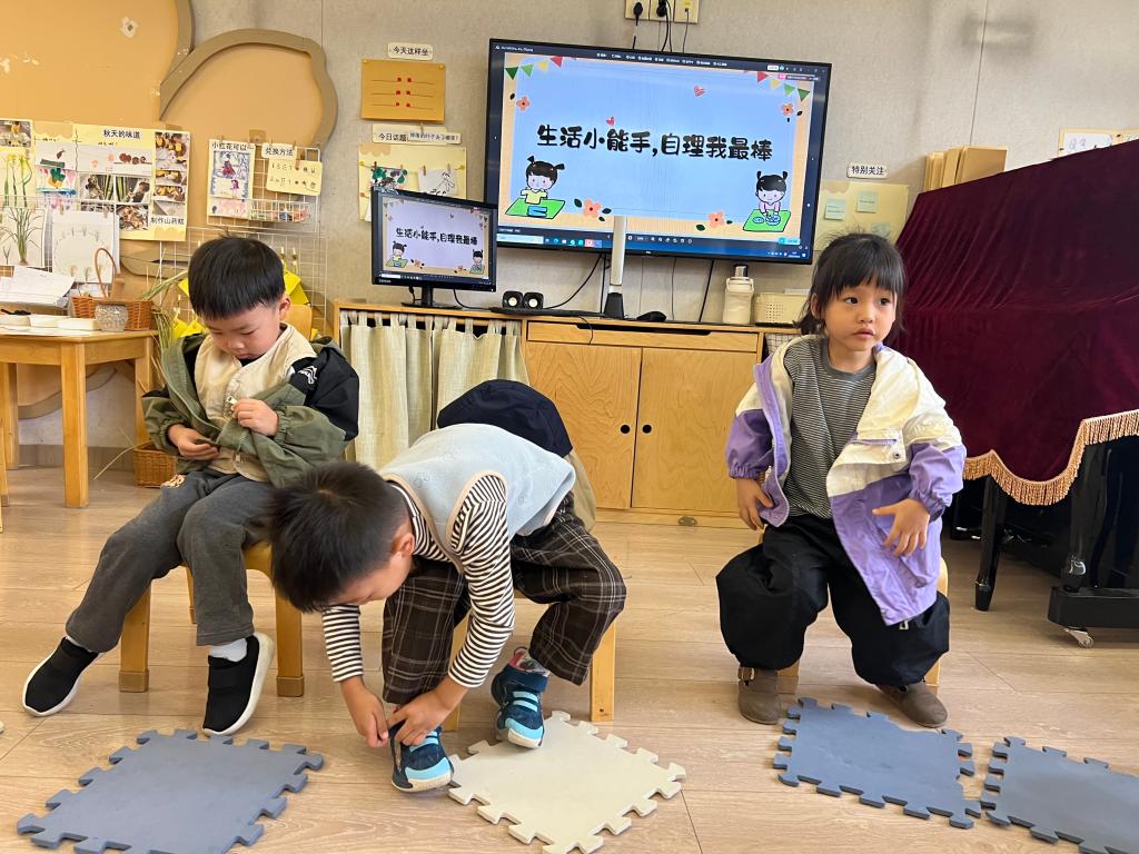 为培养幼儿独立自主的生活习惯,提升自我服务能力,2025年11月3日,我们班级举办了一场趣味十足的自理能力比赛。小选手们在穿鞋子、穿衣服、拉拉链等贴近生活的游戏中,展现了超强的动手能力和良好的生活素养。