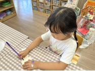 ⒈符合《指南》中“能用多种工具、材料或不同的表现手法表达自己的感受和想象”的要求,冉冉能主动选择黑、黄、白三色纸,通过撕贴创作自己的人脸,体现出一定的表现力和想象力。⒉冉冉具备基本的撕纸技能,能根据人脸特征撕出椭圆形脸蛋、眼睛等形状,但撕纸的边缘不够整齐,手部小肌肉控制能力仍需加强。⒊在创作过程中,冉冉遇到问题时能主动向同伴提问,展现出良好的同伴互动意识,从独自思考向合作交流过渡,有助于提升社交能力和问题解决能力。 |