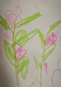 《3-6岁儿童学习与发展指南》科学领域指出:“中班幼儿能感知和发现常见动植物的外形特征”,一末和希希触摸、描述鼠尾草“像紫色尾巴”,锤锤和米乐辨别凤仙花的颜色,体现了对植物外形特征的细致观察与感知想象。《指南》艺术领域提到:“中班幼儿能用简单的线条、色彩表现事物的主要特征”,幼儿用紫色长线条表现鼠尾草花枝、粉色花朵表现凤仙花,以符号化的方式呈现植物特点,展现了艺术表现的能力。同时,记录与绘画后的交流“花瓣是一点一点的”“花藏在叶子里”,也体现了幼儿积极分享探索经验,促进了语言表达与思维的发展。 |