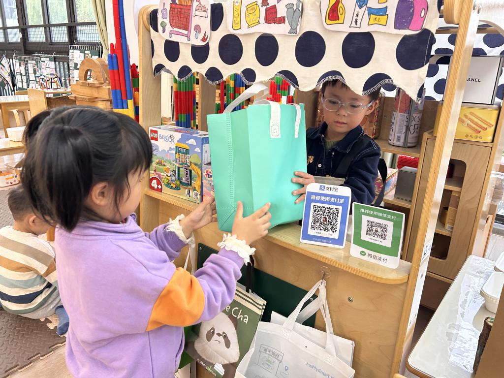 今天霖霖当永辉超市老板。第一个来的客人问:橘子几块钱?橙橙回答说一块钱,于是小客人给了一块钱,拿了橘子离开了。第二位客人直接给了一张五块钱,说:我要一个矿泉水,然后自己拿了就走了,霖霖收好了钱。第三位客人来买牙膏,问:“牙膏多少钱?”霖霖说两块钱,他给了一张一块钱的,橙橙一看,说:“不对,牙膏要两块钱。”这位客人只好又去银行领了两块钱,再次回到店里。第四位客人说:“你好,老板,我要买一瓶洗发水。”这回来招呼生意了,说:“洗发水两块钱。”客人付了两块钱走了。橙橙连忙说道:“不对,洗发水是一块钱的。”小客人已经走了,拿了一块钱追上客人,把钱给了他。回到店里后,继续招呼客人,宸宸也招呼客人,两个人没有太多的交流《指南》社会领域目标指出:“遵守基本的行为规范”其中对中班年龄段的孩子要求是:知道接受了的任务要努力完成。