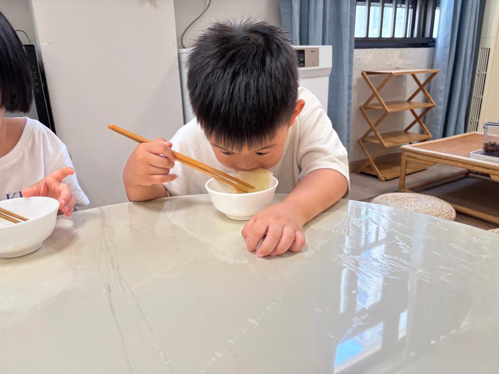 活动最后,孩子们表达了自己制作的食物好美味的感慨。在此次活动中,孩子体会到了制作食物的快乐和不易,同时也明白了珍惜粮食的重要性。