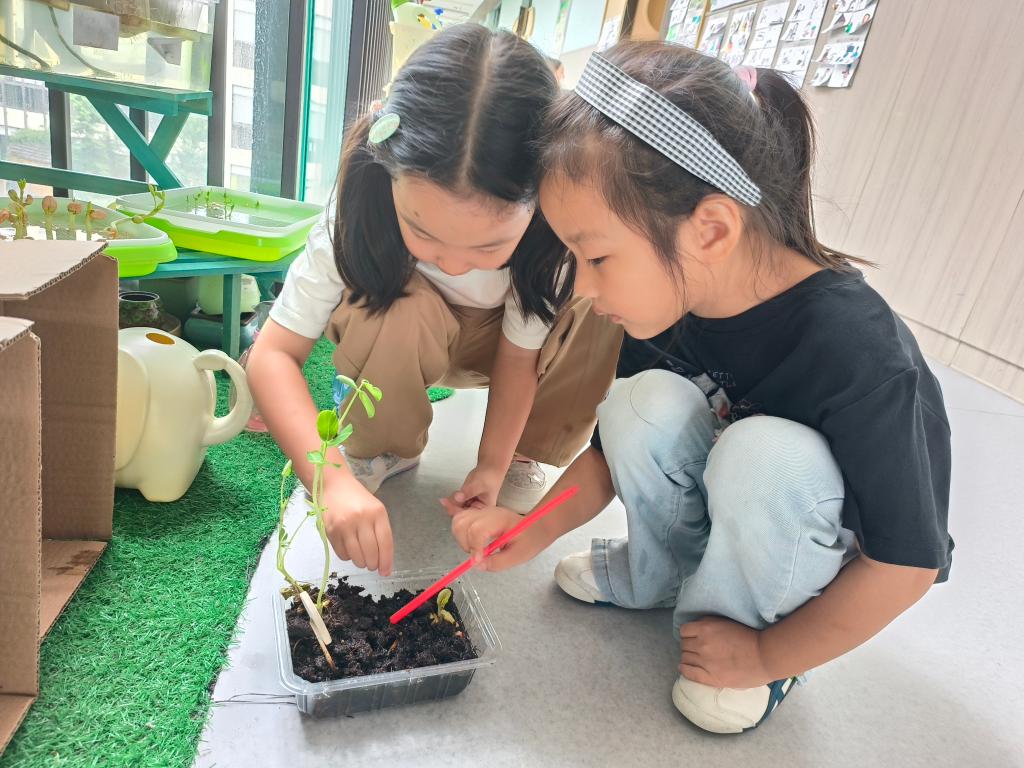 后续可以根据这一现象发起“开放性提问”,引导幼儿突破“仅关注水分”的单一认知,尝试思考更多影响花生生长的因素。例如:当幼儿再次观察花生生长状态时,提问:“可乐、玥玥,你们看现在花生长得很直,除了之前浇的水,你们觉得还有什么让它长得好呀?若后续出现花生叶片发黄等新现象,引导幼儿对比讨论:“这次花生叶子变黄了,和上次‘倒下’的情况不一样,会不会是水浇多了?帮助幼儿建立“植物生长与水分、光照、土壤、气候(晴雨)等多因素相关”的认知,拓展“探究植物与环境、气候密切关系”的关键经验。鼓励可乐和玥玥合作讨论“周末没人在幼儿园,怎么让花生不缺水”,提供相应的记录纸,将计划用简单方式记录(如画“周五下午多浇水”“让保安叔叔帮忙看一下”)。