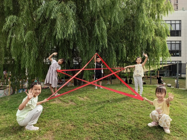 活动伊始,大4班、大5班孩子有序集合,聆听祖国生日小故事,专注神情中萌发爱国情。随后开启“创意造型庆国庆”环节:先开展“红丝带拼五角星”活动,老师讲解象征意义,孩子们分组协作,调整丝带角度与长度,共拼出象征团结的五角星,脸上满是自豪。紧接着是“肢体摆‘76’”环节,老师说明造型寓意,孩子们相互配合、调整姿势,穿插站立力求整齐,最终呈现活力“76”造型,老师用相机定格这一温馨瞬间。