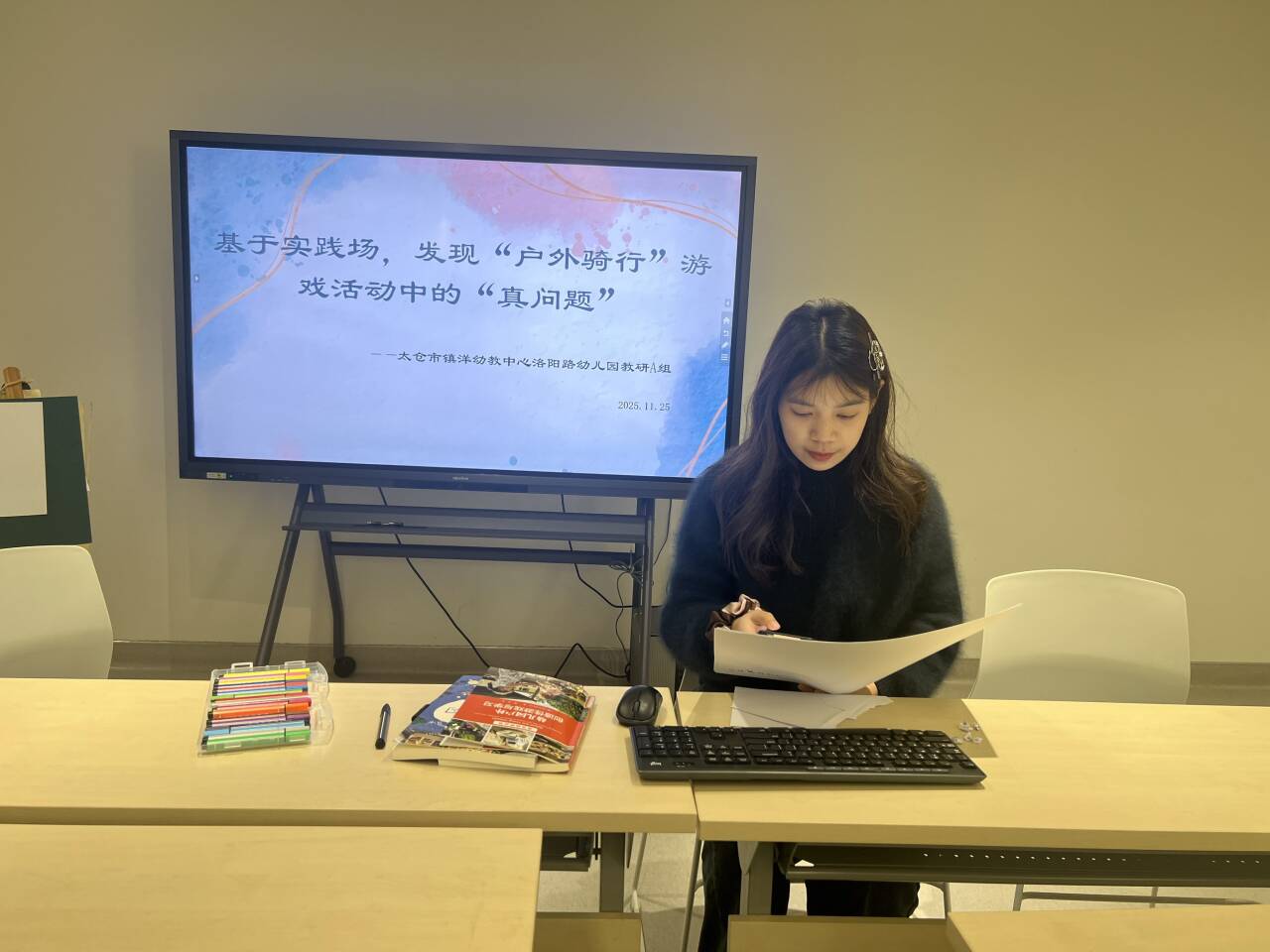 2025年11月25日下午13:30-15:30,太仓市高新区镇洋幼教中心洛阳路幼儿园教研A组开展教研活动“基于实践场,发现“户外骑行”游戏活动中的“真问题”,本次活动由陈轶凡老师主持,共计两学时。