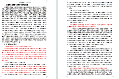 一、明晰课题中的关键概念 ㈠审美通感 “通感”是指一种感觉引起另一种感觉的连锁反应,是外界事物作用于某一器官所产生的复合感觉,这使得审美感官立体化,不再仅仅局限于二维空间,而使审美者拥有更大的审美空间。本课题研究中所提及的“通感”是指当某一物体引起幼儿某一感觉器官产生感受的同时,另一感觉器官也同时产生感受的心理现象。而审美通感则是通感在审美活动中的具体体现,是指审美者在审美活动中调动不同感觉器官同时对同一审美对象产生不同的感觉心里现象。本课题研究中的审美通感是指当幼儿在欣赏某一物体时,不同的感觉器官同时对这一物体产生了不同的审美感受。 ㈡小班美育活动 美育教育是审美教育、心灵教育、情操教育的总和,既能提升幼儿的审美素养,更能影响幼儿的胸襟、气质、趣味以及情感,温润幼儿心灵,激励幼儿精神。《关于全面加强和改进新时代学校美育工作的意见》一文中对学前教育阶段的美育提出“充分挖掘和运用各学科蕴含的体现中华美育精神与民族审美特质的心灵美、礼乐美、语言美、行为美、科学美、秩序美、健康美、勤劳美、艺术美等丰富美育资源。有机整合相关学科的美育内容,推进课程教学、社会实践和校园文化建设深度融合,大力开展以美育为主题的跨学科教育教学和课外校外实践活动。”本课题中的小班美育活动便是在此基础上进行的审美活动,通过选取不同的素材,组织形式多样的活动,最终达到提升幼儿审美素养,丰富幼儿胸襟、气质、趣味、情感,涵养幼儿心灵的目的。 ㈢基于审美通感体验创新小班美育活动的策略 本课题基于审美通感理论,探究如何借助音乐、舞蹈、绘画等不同的艺术形式帮助小班幼儿调动其不同的感官对同一对象进行审美活动,并产生相应的审美体验的组织方式。通过对实践案例的梳理和分析,总结在审美体验的引领下,幼儿选择不同的表现形式进行审美表达,最终达成丰富审美经验,提升审美能力的可行性策略。 二、学习修改后的开题报告 从课题提出的研究背景、所要解决的问题、国内外同一研究现状与研究价值、主要观点及创新之处等方面进行逐步阅读,详细学习。